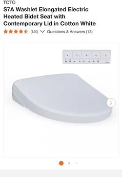 75% OFF in store only S7A Washlet Elongated Electric Heated Bidet Seat with Contemporary Lid in Cotton White$177Glendale, AZ
