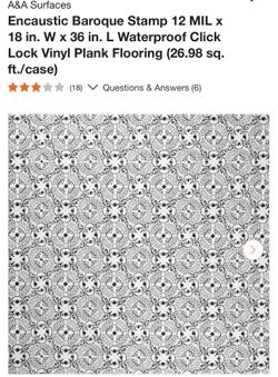 Encaustic Baroque Stamp 12 MIL x 18 in. W x 36 in. L Waterproof Click Lock Vinyl Plank Flooring (26.98 sq. ft./case)$240Glendale, AZ