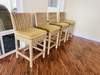 KITCHEN ISLAND HIGH CHAIRS . Sunset West Havana Resin Wicker Patio Barstool W/ Subrella Canvas Flax Cushions $700Bloomington, CA