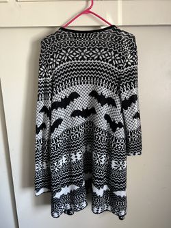 Christmas Sweater Black And White Cardigan Size Large Snowflakes Black Bats Hot Topic$30Wilmington, CA