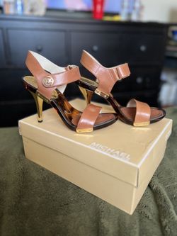 MICHAEL MICHAEL KORS Leather Heels, Tortoise Color, Velcro Strap, Size 8, Women’s Tan Brown Heels $15Wilmington, CA