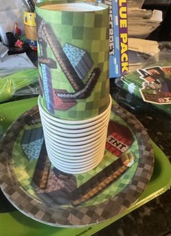 Minecraft 15 Paper Cups, 4 Small Paper Plates And 4 Big Paper plates. $5Silver Spring, MD
