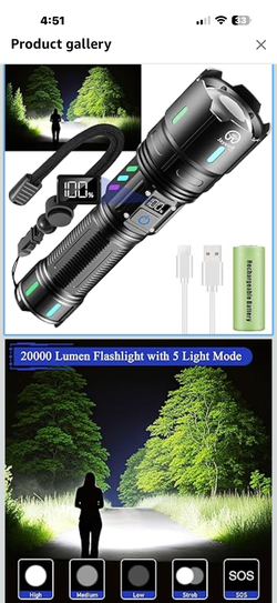 Rechargeable Flashlights High Lumens, 20000 Lumen Flashlight High Powered 5000 mAh Battery with LCD Display, 5 Light Modes, Zoomable, IP67 Waterproof,$30Crownsville, MD