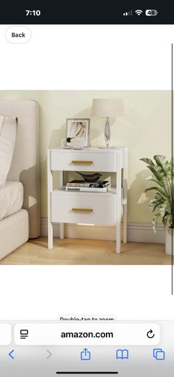 Nightstand with 2 Drawers and Open Shelf Wooden Bedside Table Gold Handles Modern Storage Night Stand Sensor Light for Bedroom, White$59Severna Park, MD