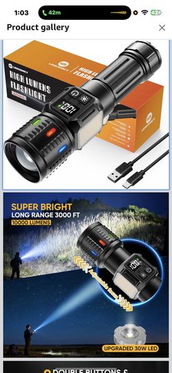 Rechargeable Flashlights High Lumens 10000, Super Bright LED Flash Light Long Lasting USB C LCD Display, Dual Light Source & Buttons with Red Light, f$30Severna Park, MD