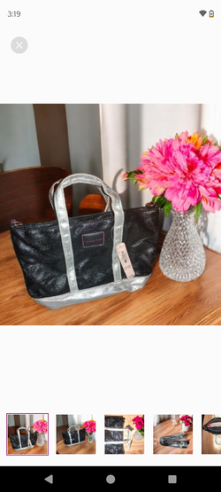NWT Victoria’s Secret Mini Black/Silver/Pink Canvas Tote Crossbody Bag$15Overland, MO