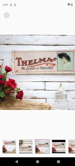 VTG THELMA THE QUEEN OF PERFUMES,1974 SANFORD J.HEILNER INC- SIGN-19" X 7"$20Overland, MO