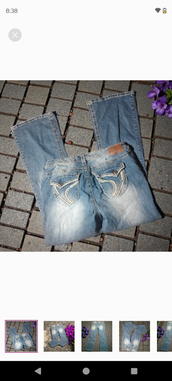 Ariya White Washed Distressed Flap Embroidered Back Pocket Flare Leg Jeans (14)$15Overland, MO