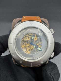 50mm Auto Skeleton Silvertone SHUTTER Fan Blades Brown Strap ANDROID Watch AD526$260San Diego, CA