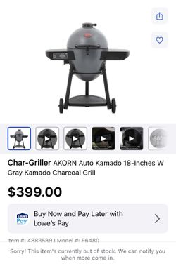 Char-Griller/smoker AKORN Auto Kamado 18-Inches W Gray Kamado Charcoal Grill$300Williamsburg, VA