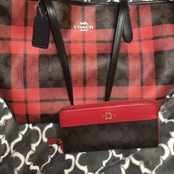 Red And Black Checkered Coach Handbag And Wallet To Match$300Phoenix, AZ