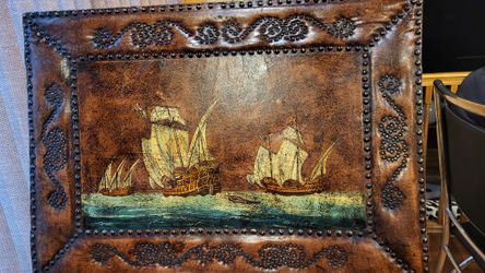 "Sea Battle, "Very Fine Painting on Leather with Studded Leather Frame, 1920s$1,400Wheeling, IL