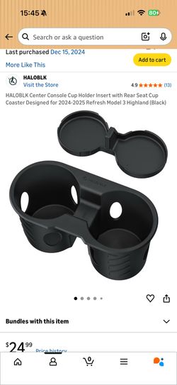 HALOBLK Center Console Cup Holder Insert with Rear Seat Cup Coaster Designed for 2024-2025 Refresh Model 3 Highland (Black)$15Katy, TX