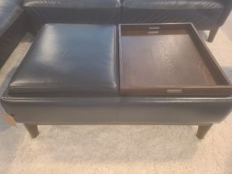 Jollene Genuine Leather and Wood Ottoman, Coffee Table, Seating Bench with Wood Trays in Navy/Dark Blue - Macys Furniture$399Belmont, CA