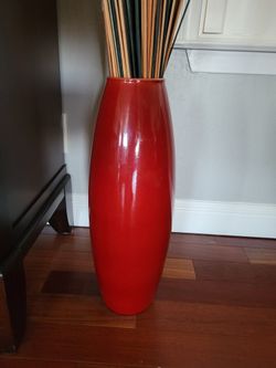 Red Vase With Decorative Wood Shoots, Home Decor, Living Room Decor, Ceramic $40Belmont, CA