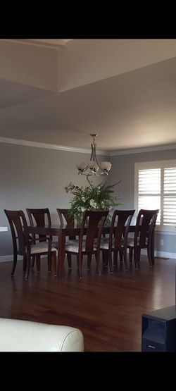 Expandable Wood Dining Table and Eight Matching Upholstered Chairs, kitchen$800Belmont, CA
