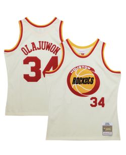 Men's Houston Rockets Hakeem Olajuwon Mitchell & Ness Cream Chainstitch Swingman Jersey $115Santa Fe Springs, CA
