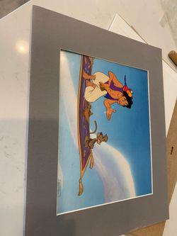 Aladdin original hand painted animation cell and painted background.$300Los Angeles, CA