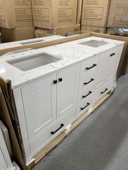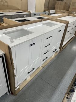 Bathroom vanity cabinet 72” solid mango Quartz top with sinks and backsplash $1,600Kent, WA