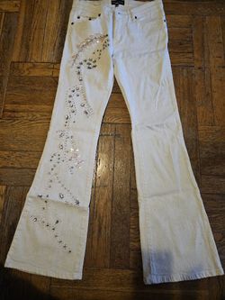 Embroidery Flared Jeans (Small Blemishe At Bottom Left Corner As Shown in Pic).$15Bronxville, NY