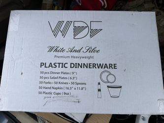 WDF Partyware 350Piece Silver Plastic Dinnerware Set for 50 Guests - Silver Plastic Plates with Cutlery Include:50Dinner Plates-50Dessert Plates-50Pre$35Laurel, MD