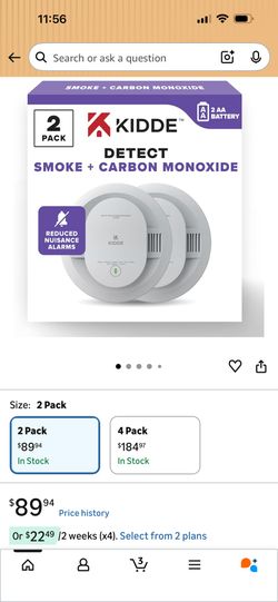 Kidde Smoke & Carbon Monoxide Detector, AA Battery Powered, LED Warning Light Indicators, 2 Pack$50Laurel, MD