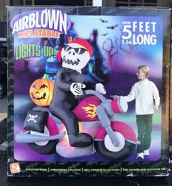 Rare Halloween 5 foot long inflatable skeleton on motorcycle - blow up airblown - Gemmy$85Los Angeles, CA