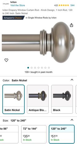 Ivilon Drapery Window Curtain Rod - Knob Design, 1 Inch Rod, 120 to 240 Inch. Satin Nickel$45Compton, CA