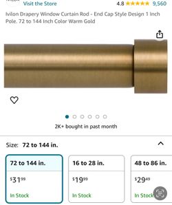 Ivilon Drapery Window Curtain Rod - End Cap Style Design 1 Inch Pole. 72 to 144 Inch Color Warm Gold Two Available$25Compton, CA