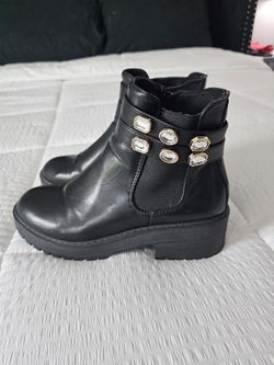 Black leather booties with gold accessories $15San Diego, CA
