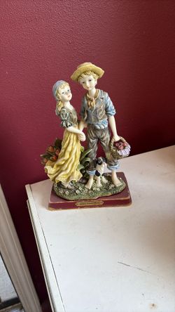vintage Capodimonte porcelain figurine set, possibly from the 1970s, featuring a boy and a girl with a small dog$20Anaheim, CA
