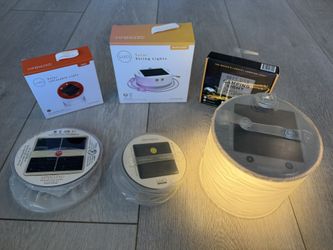 Lot Of 6 MPOWERD Luci Solar Lanterns and Color Solar String Lights + Phone Charger & Revel Geqr 30ft (3 Brand New / 3 lightly used)$100Norco, CA