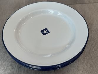 Set Of 8 Williams Sonoma Enamelware Western Blue White Star 10" Metal Dinner Plates$40Norco, CA