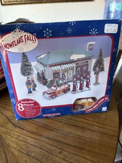 2003 Snowflake Falls Lighted Service Station Set, a collectible Christmas village accessory$30Fremont, CA