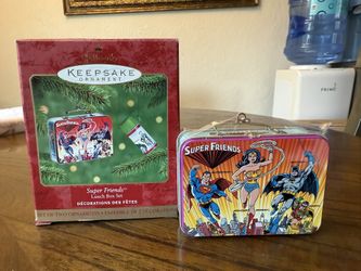 2000 Hallmark Keepsake Ornament Super Friends Lunch Box Set from the year 2000. The set includes a miniature lunch box and a separate drink container $15Fremont, CA