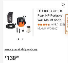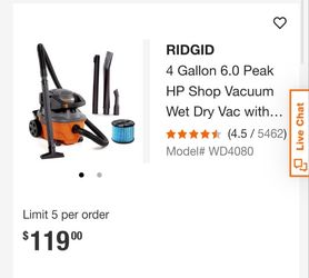W5500 Ridgid 5gal 5hp Vacuum New In Box$90Sacramento, CA