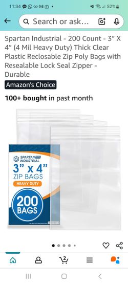 Spartan Industrial - 200 Count - 3” X 4” (4 Mil Heavy Duty) Thick Clear Plastic Reclosable Zip Poly Bags with Resealable Lock Seal Zipper - Durable$5Pembroke Pines, FL