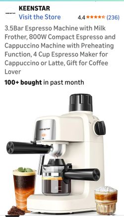 Keenstar 3.5Bar Espresso Machine with Milk Frother, 800W Compact Espresso and Cappuccino Machine with Preheating Function, 4 Cup Espresso Maker for Ca$30Pembroke Pines, FL