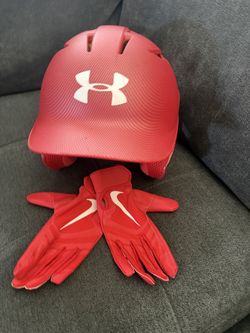 Matte Red Under Armour Baseball Helmet and Nike Gloves$55Riverside, CA