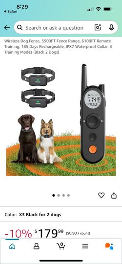 Wireless Dog Fence, 3500FT Fence Range, 6100FT Remote Training, 185 Days Rechargeable, IPX7 Waterproof Collar, 3 Training Modes (Black 2 Dogs)🐕 $60Los Angeles, CA