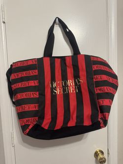 VICTORIAS SECRET THE PERFECT RED WEEKENDER TOTE BEACH BAG ZIPPER BLACK STRIPED$25Lithonia, GA