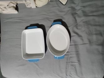 3 Piece Blue And White Stoneware - Bakeware Cassarole Dishes -1 Rectangle And 2 Oval$22Las Vegas, NV