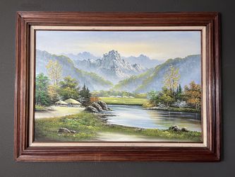 Vintage Oil Painting Of Lake With Mountain Background Signed by Artist, Original Wood Frame$175Aliso Viejo, CA