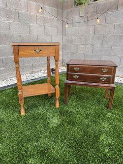 Vintage Lane Chippendale Mahogany 2-Drawer Table + Mid-Century Solid Pine 2-Tier Side Table Set$50Las Vegas, NV