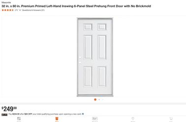 Store price $279 wt tax Here $200 wt tax cash or Zelle Masonite 32 in. x 80 in. Premium Primed Left-Hand Inswing 6-Panel Steel Prehung Front Door w$200Lucerne Valley, CA