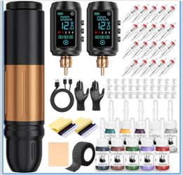 Tattoo Gun Kit Wireless Tattoo Machine Pen Kit with 2Pcs 1600mAh Replaceable battery and 20 pcs Tattoo Cartridge Needles, 10 Ink Colors for Complete T$20Philadelphia, PA