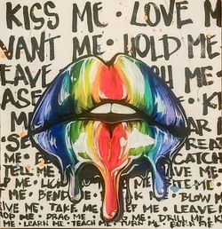 20x20 Dripping Lips Rainbow Canvas Art$100Houston, TX