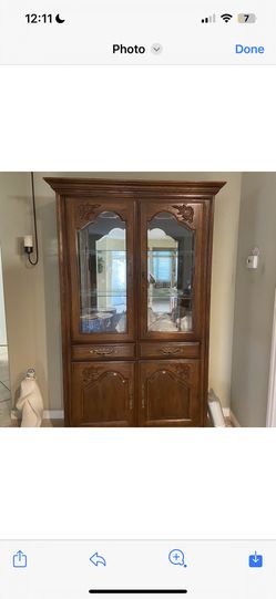 Solid Wood Hutch with Built-in Lights & Etched Glass Shelves$400Rancho Cucamonga, CA