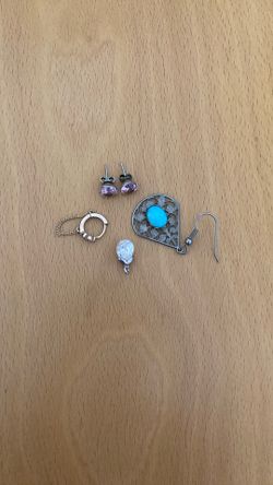 One pair of stud earrings, two single stud earrings, and one pendant.$10Glendale, AZ