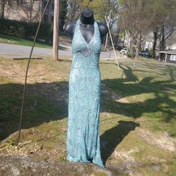 Aqua Beaded Halter Gown$100Norcross, GA